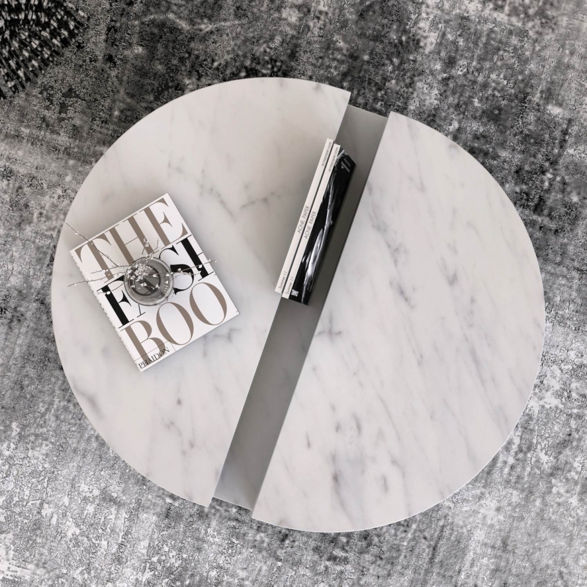 Bring timeless sophistication into your living space with our Italian Carrara Marble Geom Round Coffee Table. Crafted from premium Carrara marble, this table showcases the iconic soft white background accented with delicate grey veining — a true hallmark of luxury and elegance.