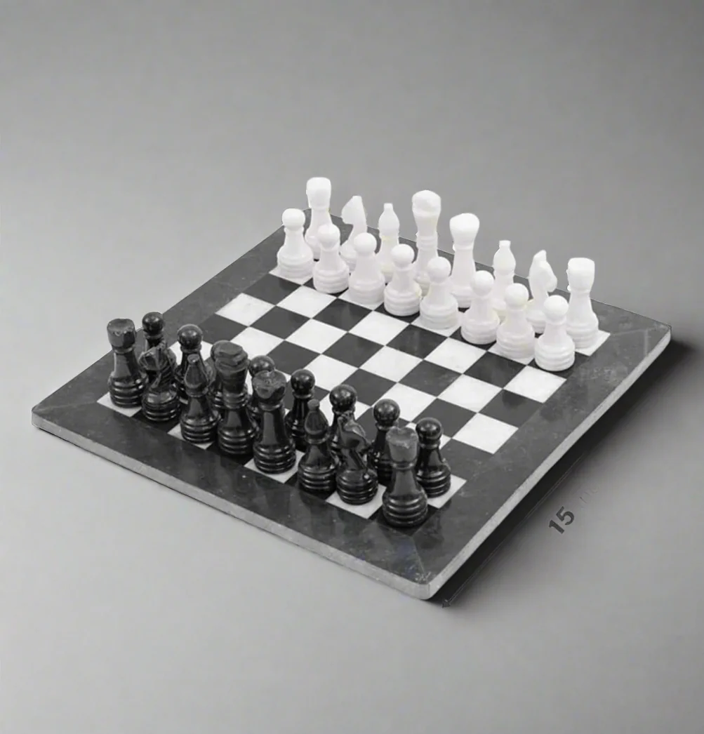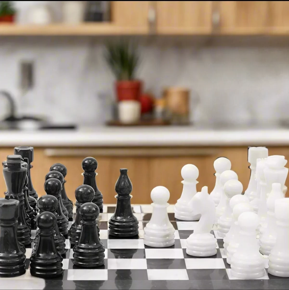 Elevate your game nights with the timeless beauty of our Black & White Marble Chess Set. Crafted from the finest natural marble, this set features a striking contrast between deep black and pristine white, creating a visually captivating board that’s perfect for both casual players and serious competitors.