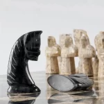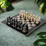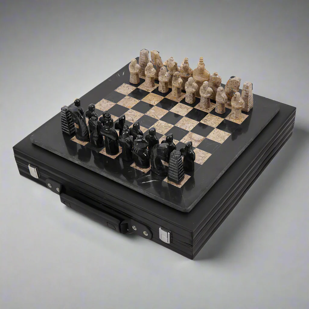 This exclusive chess set features antique-inspired pieces, bringing a classic charm to every game while showcasing extraordinary craftsmanship and attention to detail.