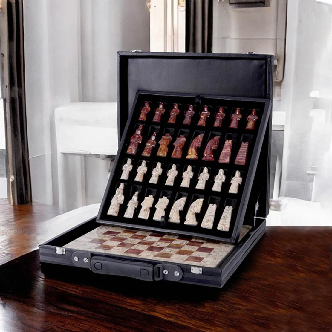 Immerse yourself in bold elegance with our Limited Edition Coral & Red Marble Chess Set. This exquisite set blends the natural beauty of coral and red marble with the timeless craftsmanship of antique-style chess pieces. The vivid colors and intricate carvings make every game an extraordinary experience.