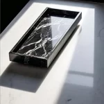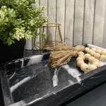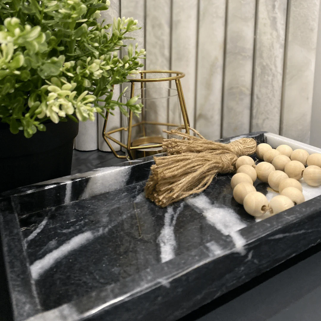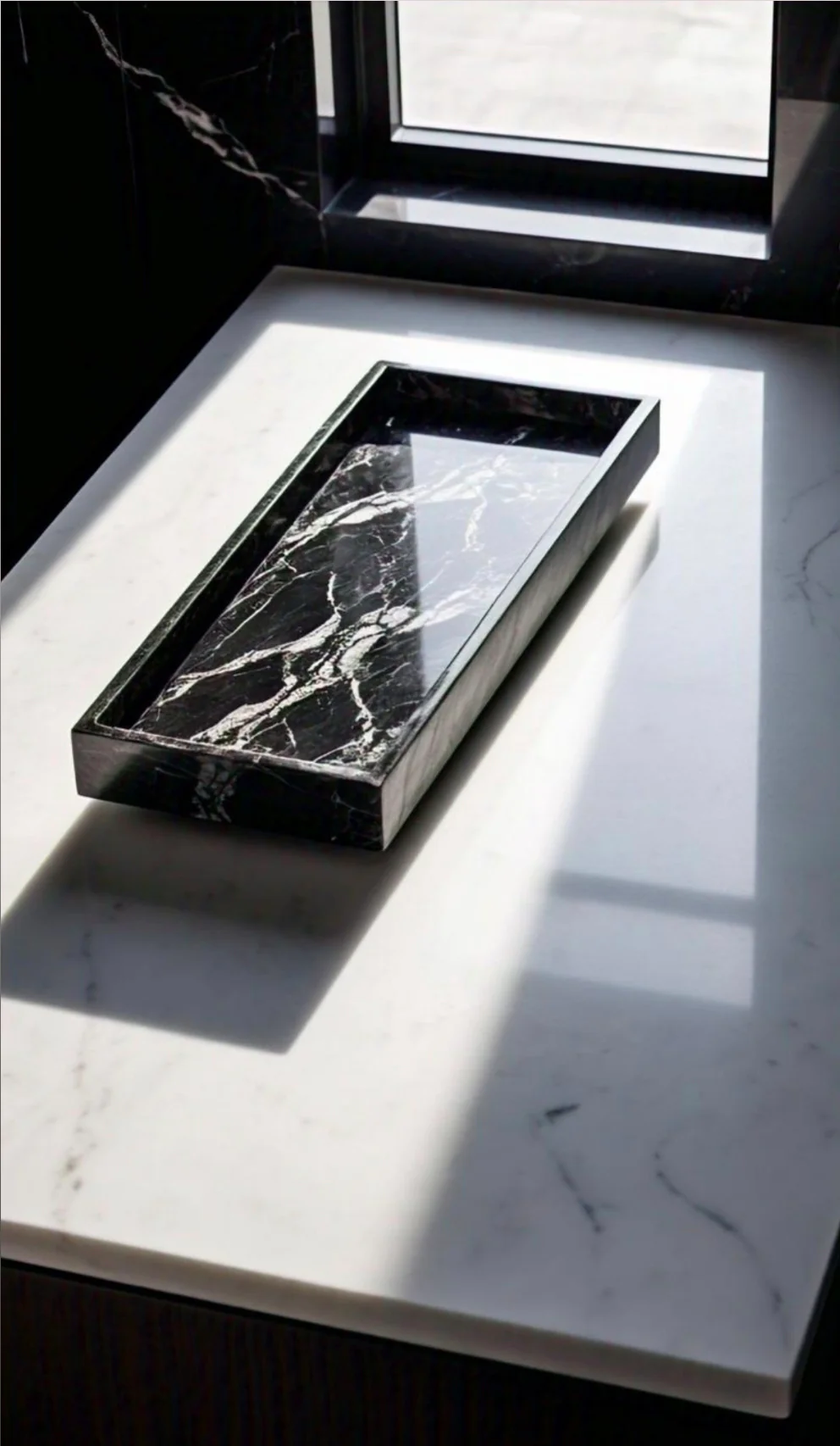 Turn your everyday routine into a moment of elegance with the Marquina Mystique Tray — a sleek, handcrafted vanity tray made from rich Nero Marquina marble.