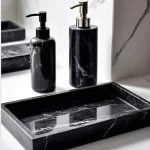 Its bold black surface with subtle white veining adds depth and drama to your bathroom, while the minimalist design keeps your essentials — shower gel, hand wash, face wash — perfectly in place and always within reach.