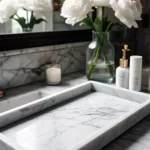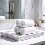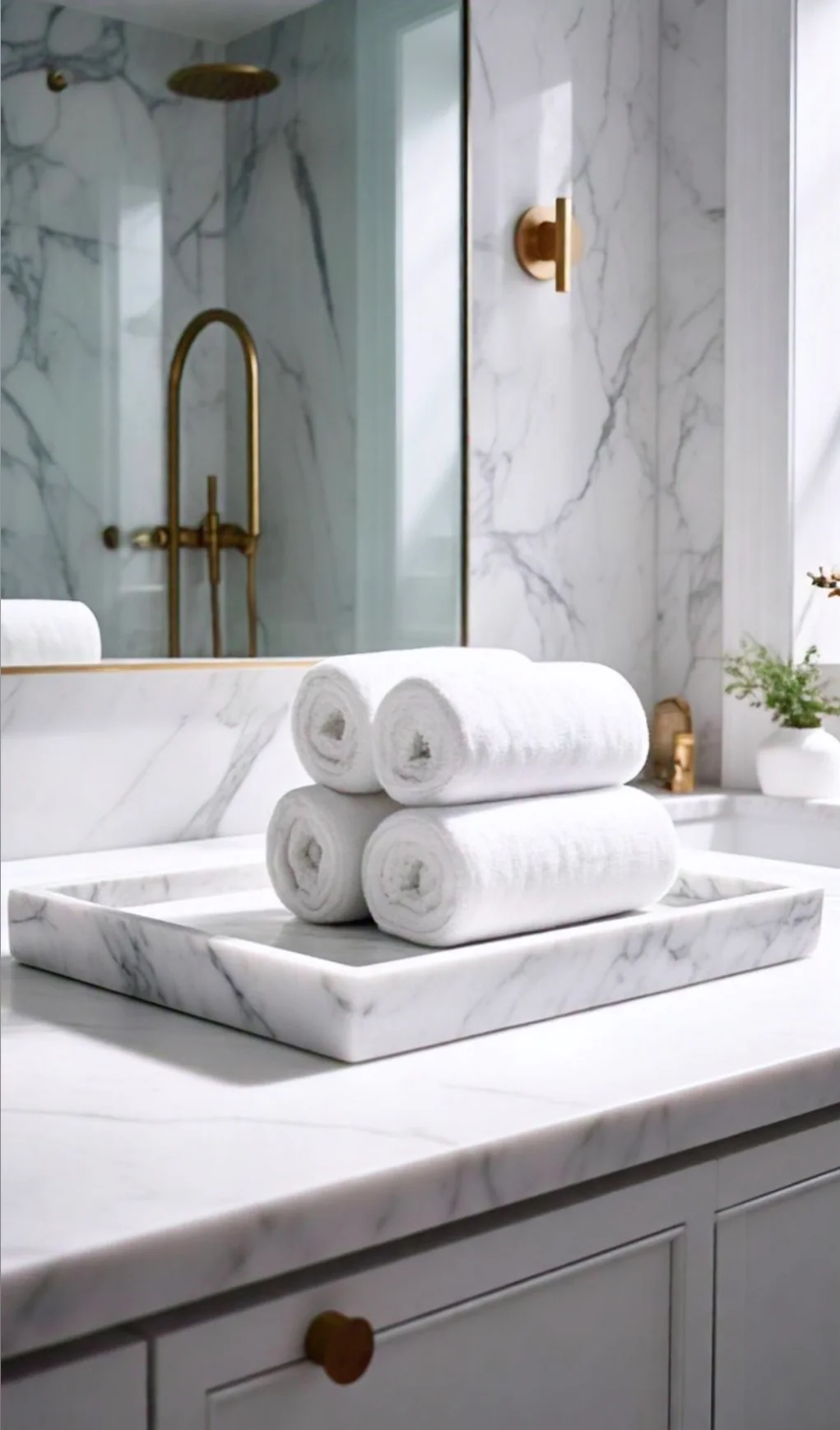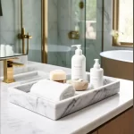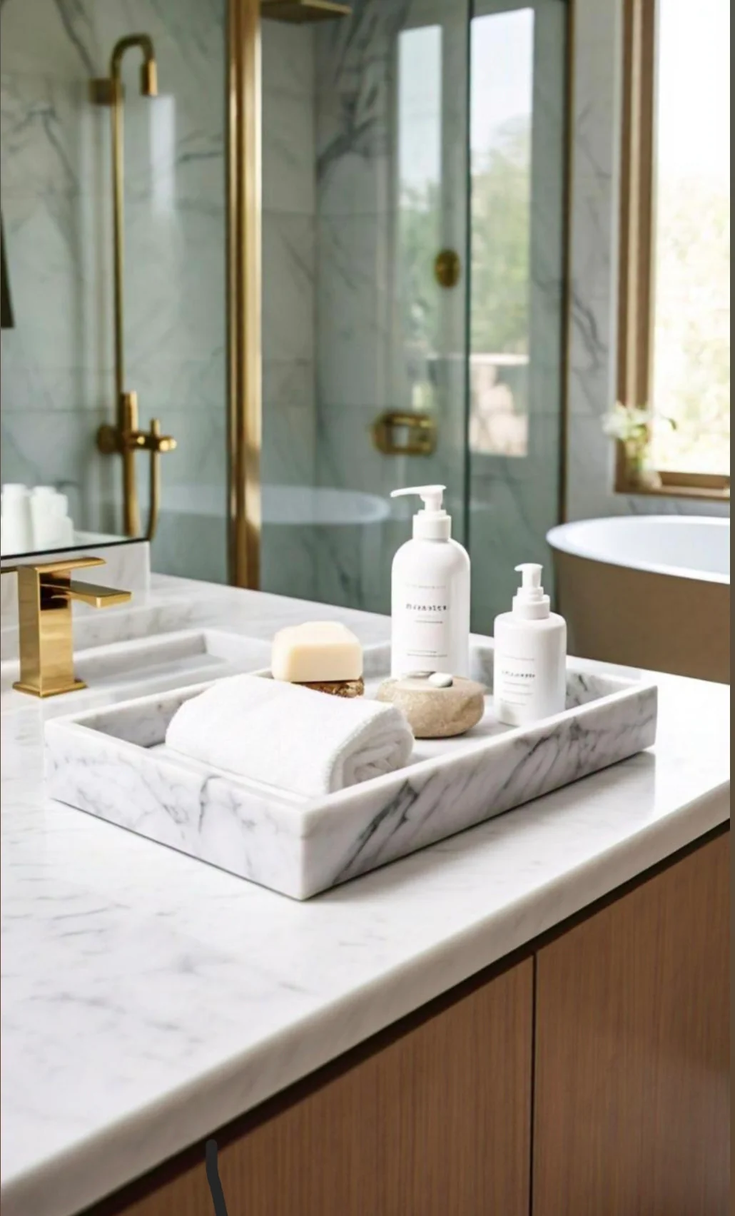 Bring soft luxury and effortless organization to your space with the Carrara Glow Tray a beautifully crafted bathroom tray made from genuine Carrara marble.