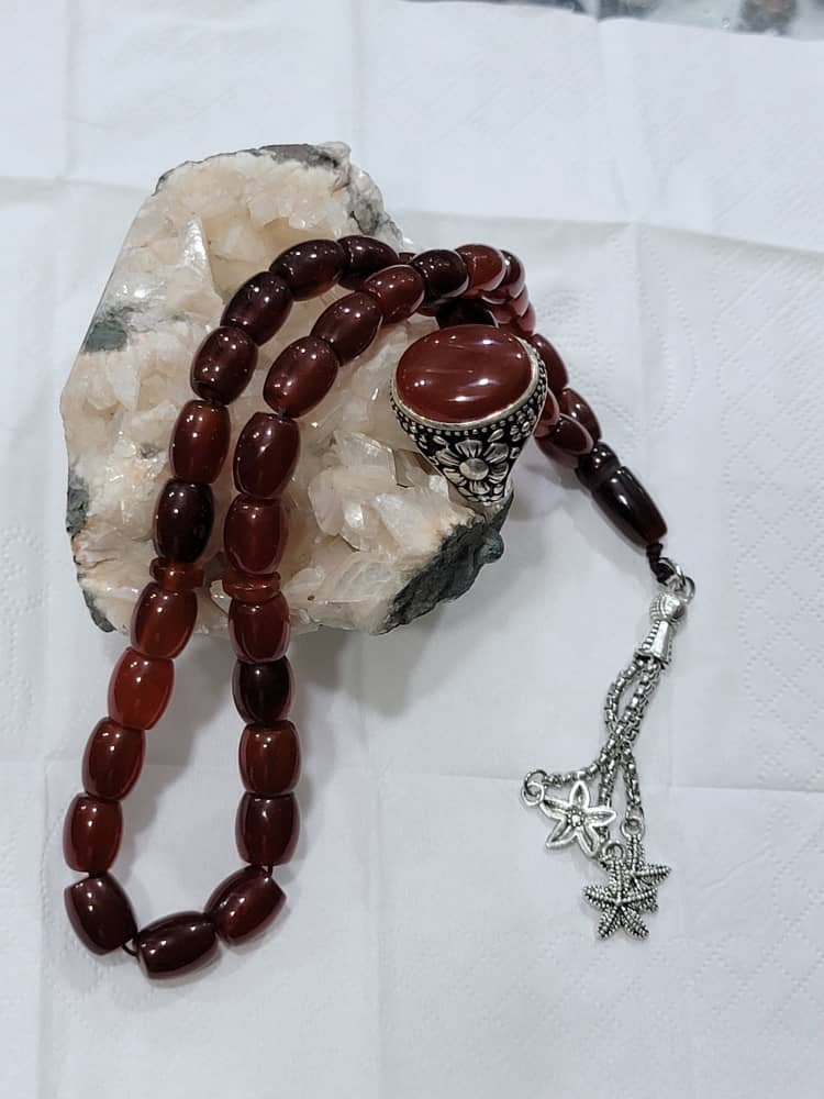 Natural Agate Silver Ring (Yemeni Aqeeq) and Subha – Timeless...
